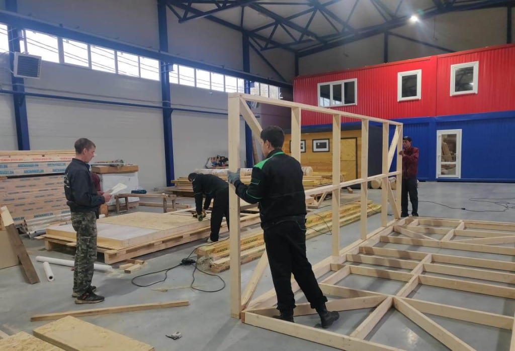 У нас большого размера крытый производственный цех, площадь которого позволяет собирать несколько конструкций одновременно и независимо от погодных условий, работа не останавливается не на минуту. В штате компании всегда работают высококвалифицированные специалисты, разделенные на бригады, благодаря этому нам удалось наладить процесс сборки так что простоев в работе нет и процесс изготовления занимает минимальные сроки.